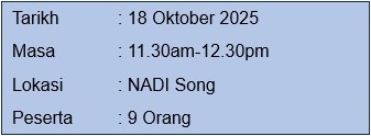 Mengadakan satu lawatan sambil belajar ke NADI Song sebagai sebahagian daripada aktiviti pembelajaran luar bilik darjah bagi murid-murud tadika tersebut.